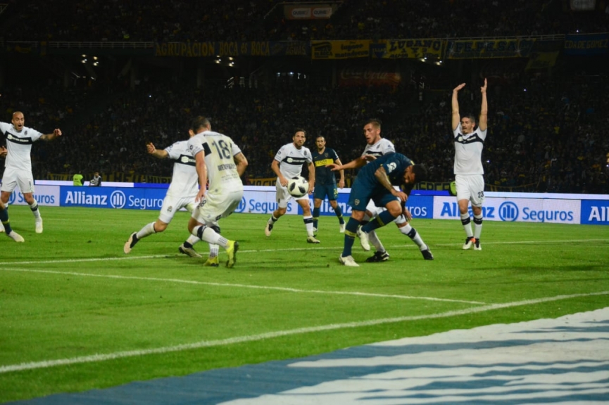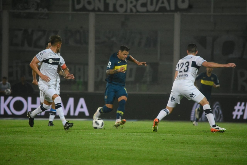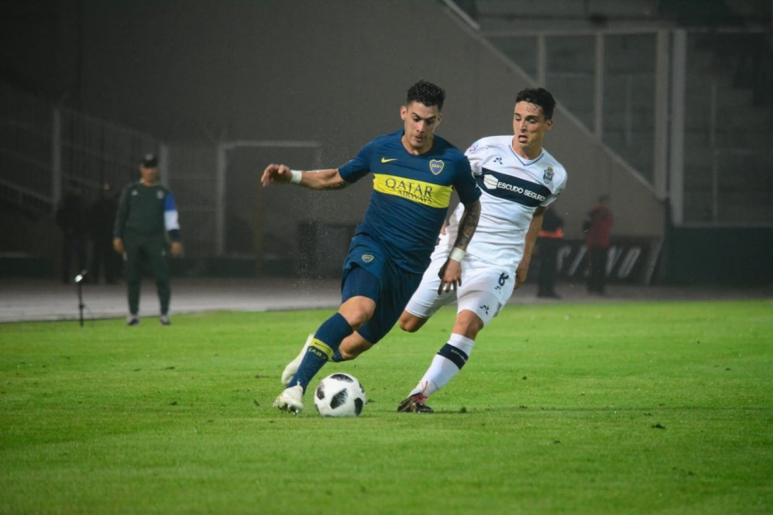 Pedro Troglio apostó por volantes externos con rasgo ofensivo para aprovechar la brecha entre los laterales y los mediocampistas de Boca. Así fue como Horacio Tijanovich y Matías Gómez se las ingeniaron para explotar su velocidad por los costados. De todas maneras, a Gimnasia La Plata también le faltó la contundencia necesaria para abrir el marcador en esos primeros 45 minutos. Mauro Guevgeozián estuvo cerca de quedar mano a mano en sendas oportunidades con Agustín Rossi: en la primera no logró alcanzar una habilitación de Facundo Oreja y en la restante fue derribado por Carlos Izquierdoz en el borde del área (el posterior tiro libre de Santiago Silva se estrelló en la barrera).
