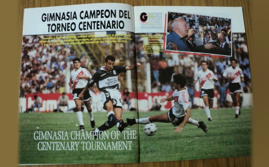 El penúltimo antecedente data de 1994 y corresponde a la Copa Centenario, una competencia organizada por la Asociación del Fútbol Argentino en reconocimiento a los primeros 100 años de la entidad. Pese a que el certamen empezó en 1993, la Final se llevó a cabo en enero del año siguiente y tuvo como protagonistas a River y Gimnasia, que se consagró como campeón tras ganar por 3-1 en su estadio, con los tantos de Hugo Romero Guerra, Pablo Fernández y Guillermo Barros Schelotto (descuento de Facundo Villalba).