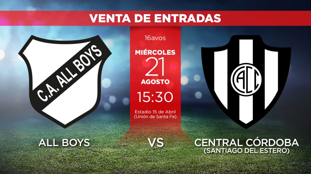 All Boys y Central Córdoba de Santiago del Estero se enfrentarán el próximo miércoles desde las 15.30 en el estadio 15 de Abril de Santa Fe, por los 16avos. de Final de la Copa Total Argentina. Así se desarrollará la venta de entradas para el encuentro que definirá al rival de Villa Mitre de Bahía Blanca en la próxima instancia del certamen.