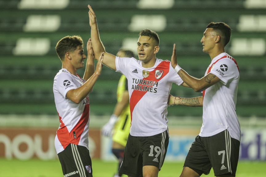 River hizo de la intensidad y el desmarque permanente sus puntos fuertes para doblegar a Defensores de Pronunciamiento. Las intenciones del Millonario fueron claras desde un principio, frente a un rival que se vio limitado en el aspecto físico y futbolístico. Los goles de Matías Suárez y Julián Álvarez le dieron forma a la victoria parcial de un equipo que mostró superioridad desde el inicio.